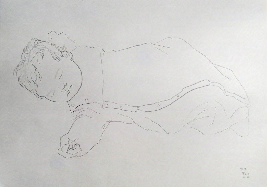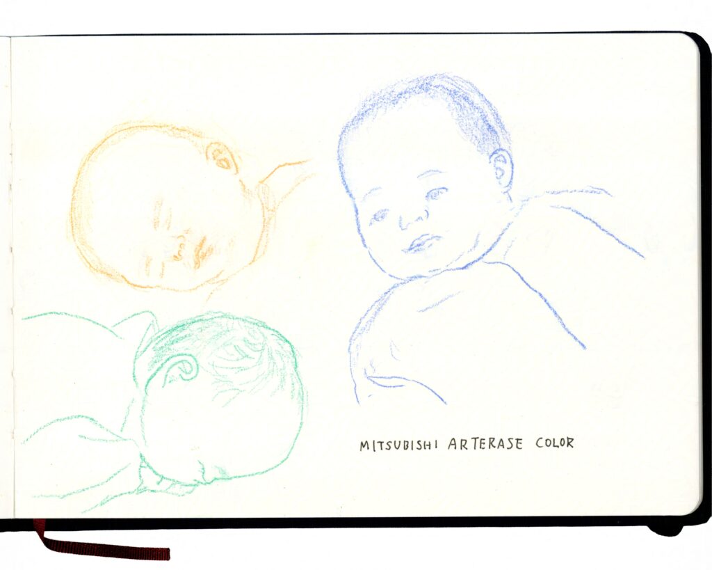 二女の時は新生児の頃の早い段階から描き始め、できるだけ直に見て描くことをしたり。