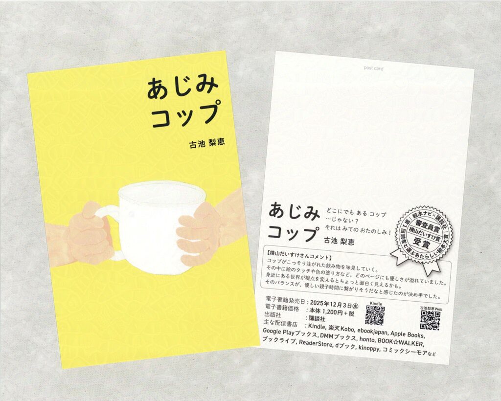 2025年末に出版された電子書籍版『あじみコップ』の発売お知らせハガキを作りました。